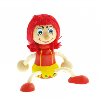 Prekrasna drvena sjedeća figura koja potiče razvoj dječjih pokreta, mašte i razigrane igre. U donjem dijelu tijela ima otvor za sjedenje na ljuljački. Lutka se stoga može kupiti zasebno ili s ljuljačkom, te može biti veseli ukras dječje sobe, kao i ostalih prostorija.