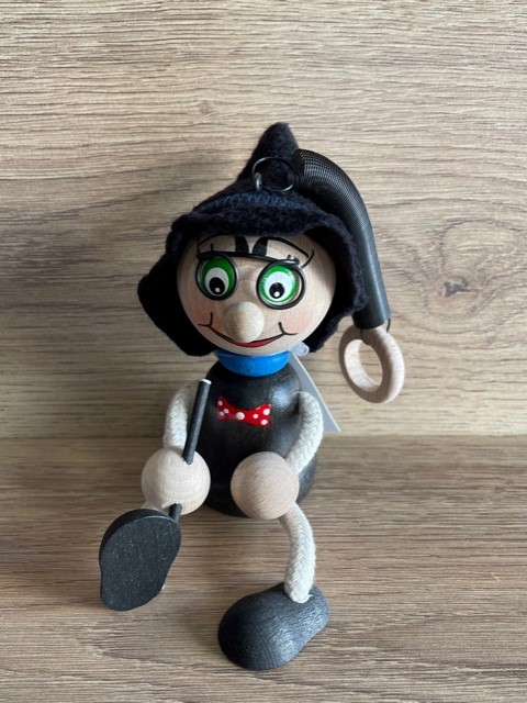 Prekrasna drvena figurica koja potiče razvoj pokreta, fine motorike i mašte djeteta. Može se objesiti za drveni prsten na kraju opruge. Drveni ukras.